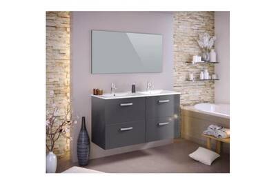 Stella Ensemble Salle De Bain Double Vasque Avec Miroir L 120 Cm Gris Laque Brillant